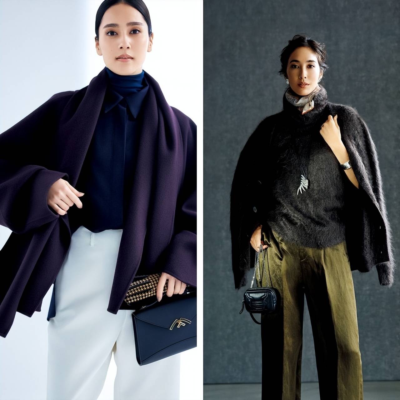 秋日里,以深蓝色系为主打的羊毛衬衫×高领针织叠穿,尽显成熟韵味,披上紫色斗篷式大衣。以优雅的廓形和渐变色系装点季节,让美丽更深邃。