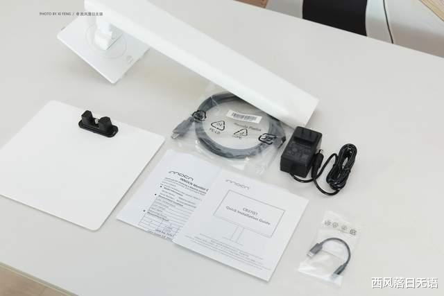 在端口配备这块,联合创新CB27Q1也给的蛮足,除了HDMI2.0端口和DP1.4端口,还给了上了支持15W反向供电的Type-C口和USB数据传输口。配件里送了一根Type-C转3.5mm音频口的转换线,可以外联音箱。