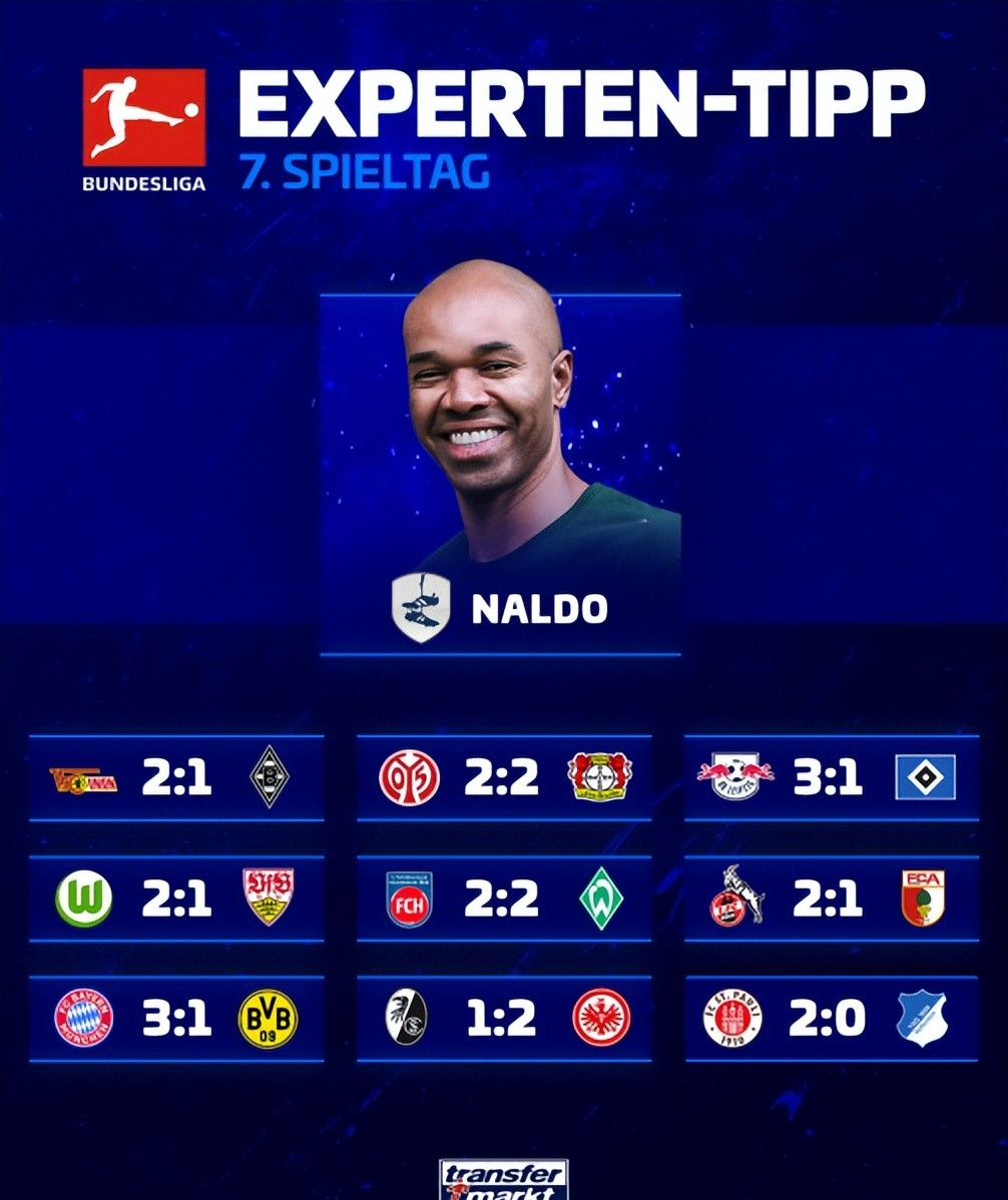 就在赛前,来自德国的权威足球媒体《转会市场》也发布了每周一期的娱乐预测,来为本轮比赛进行预热。