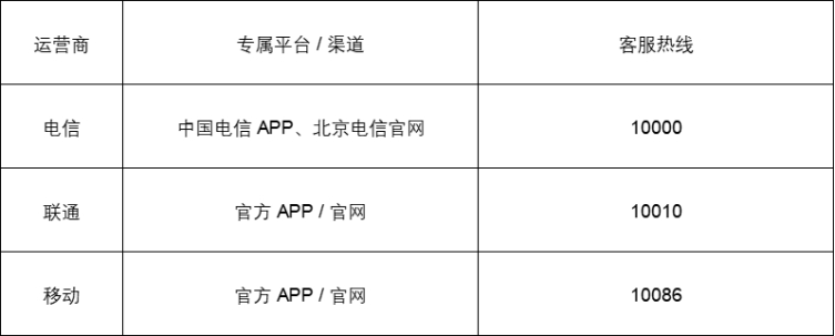 企业可以直接通过各大运营商官方渠道查询办理: