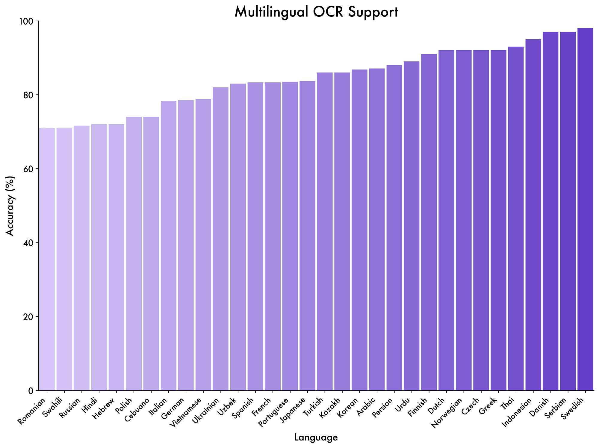 Qwen3-VL能识别的非中文、英文语言从10种扩展到32种,覆盖更多国家和地区。在这32种语言上,模型的识别准确率已经超过70%,达到实际可用水平。这些语言包括瑞典语等欧洲语言、斯瓦西里语等非洲语言、越南语等东南亚语言、印地语和乌尔都语等南亚语言和日语韩语等东亚语言,基本覆盖了常用的小语种。