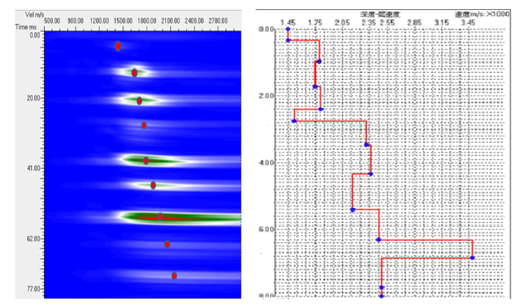速度扫描与Radon变换:通过Radon变换将地震数据从时空域转换到时间-速度域,构建垂直速度结构,识别散射界面。
