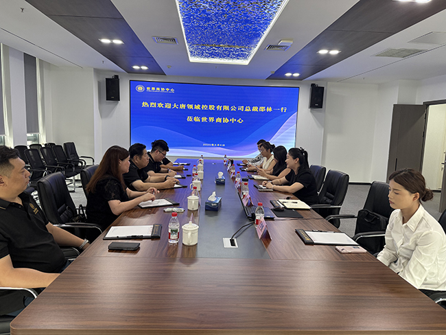 为促进企业交流、凝聚发展共识,8月6日,大唐领域控股工会委员会主席、廉政办公室主任刘政,国际事业部部长李玲洁,基金部经理、西部金投高级合伙人、国际创投长安号创始人、中国国际投资促进会理事单位联络人刘厚志一行赴世界商协中心座谈交流。世界商协中心秘书长曹真出席本次会议。