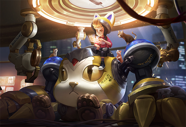 先来聊聊这款皮肤的建模和特效。刘禅这次化身夜猫侠,身穿一套黑色的猫耳连体衣,身后的机甲也被改造成了一只巨大的猫咪造型,两只眼睛发出荧光绿的光芒,看起来既可爱又带点神秘感。这个设计非常讨喜,不管是男生还是女生玩家,看到都会觉得哇,好萌。进入局内,技能特效更是细节满满。一技能开启后,护盾直接变成了一个毛茸茸的猫爪形状,刘禅加速跑起来,身后还带着爪痕特效;普攻的时候,猫爪会直接拍向敌人,感觉打击感都变强了。二技能控制敌人时,会从机甲上释放出一个猫咪光圈,被控的敌人头上还会出现一个可爱的猫咪图标,嘲讽效果满分。大招就更欢乐了,机甲旋转时,周围会环绕着好几个猫咪虚影,像是在开猫咪派对,特效简洁但非常有趣,最关键的是不影响对局视野,不会因为特效太花哨而看不清敌人。