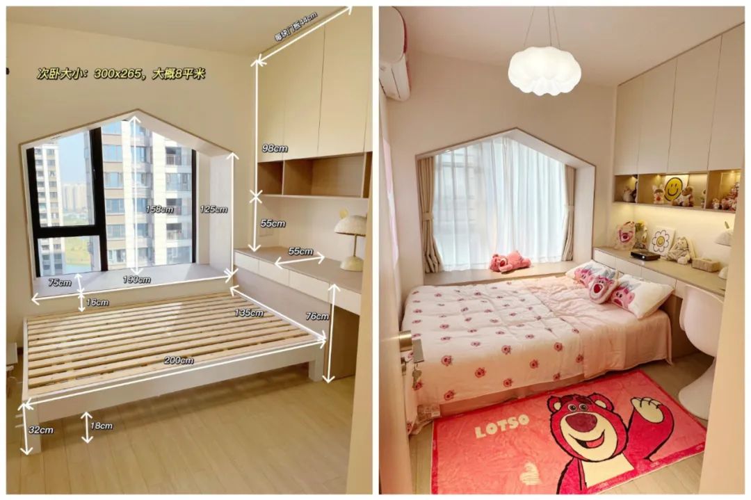 如果不缺那点收纳空间,我更倾向摆放一张成品的平板床,不仅能解决通风差的问题,后期还方便调整布局。