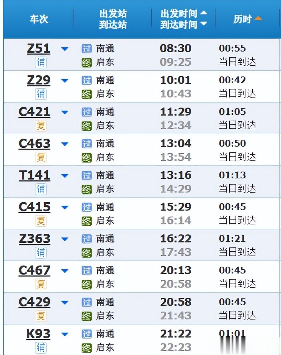 最后看看时间的差异,从南通到启东,汽车的用时基本在1.5小时-2小时之间,也要看路况是否拥堵;而火车,时间要稳定多了,一般就是45分钟-1小时就能到达。