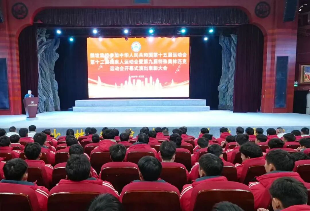 1月2日,鹅坡武校隆重举行参加中华人民共和国第十五届运动会、第十二届残疾人运动会暨第九届特殊奥林匹克运动会开幕式演出表彰大会。大会旨在表彰在十五运及残特奥会开幕式演出筹备过程中作出突出贡献的先进学生、教职工及后勤保障人员。