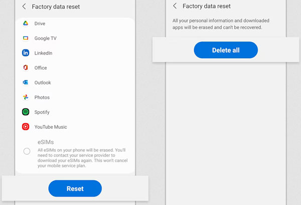 输入您的PIN码或图案进行确认,然后点击“全部删除”。之后您的设备将开始重置。