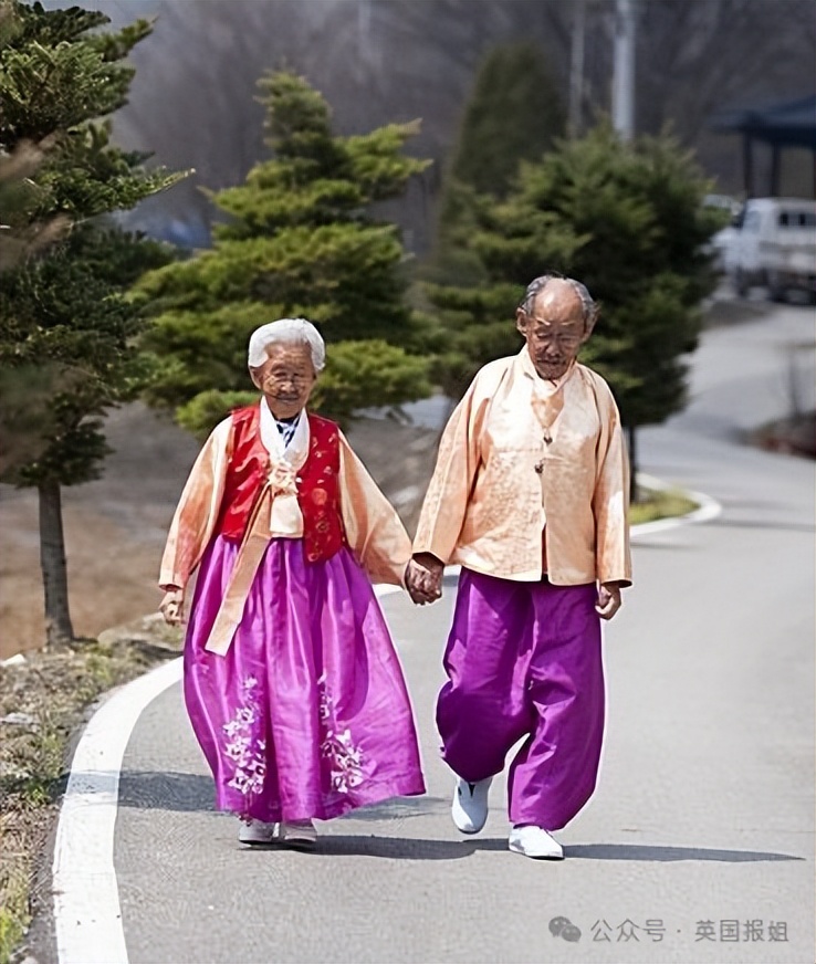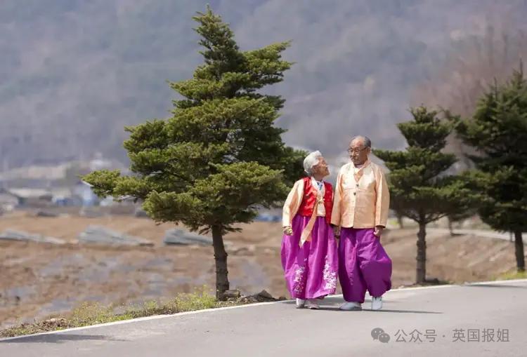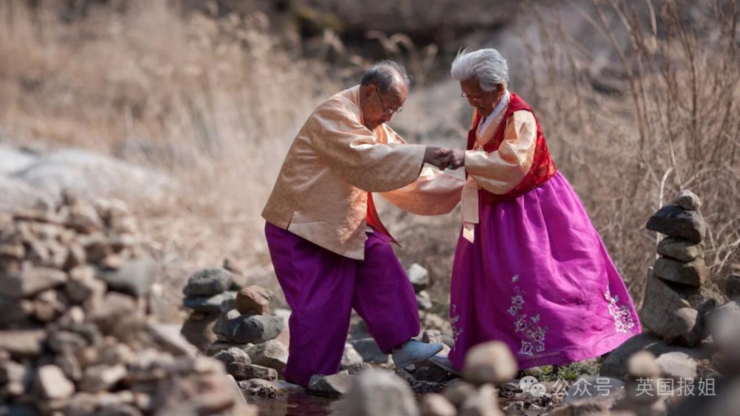 2012年,他在江原道的小村庄里,遇见了89岁的姜溪烈和98岁的赵炳万,老两口手牵手散步的模样,像极了初恋的少年少女,瞬间打动了他。