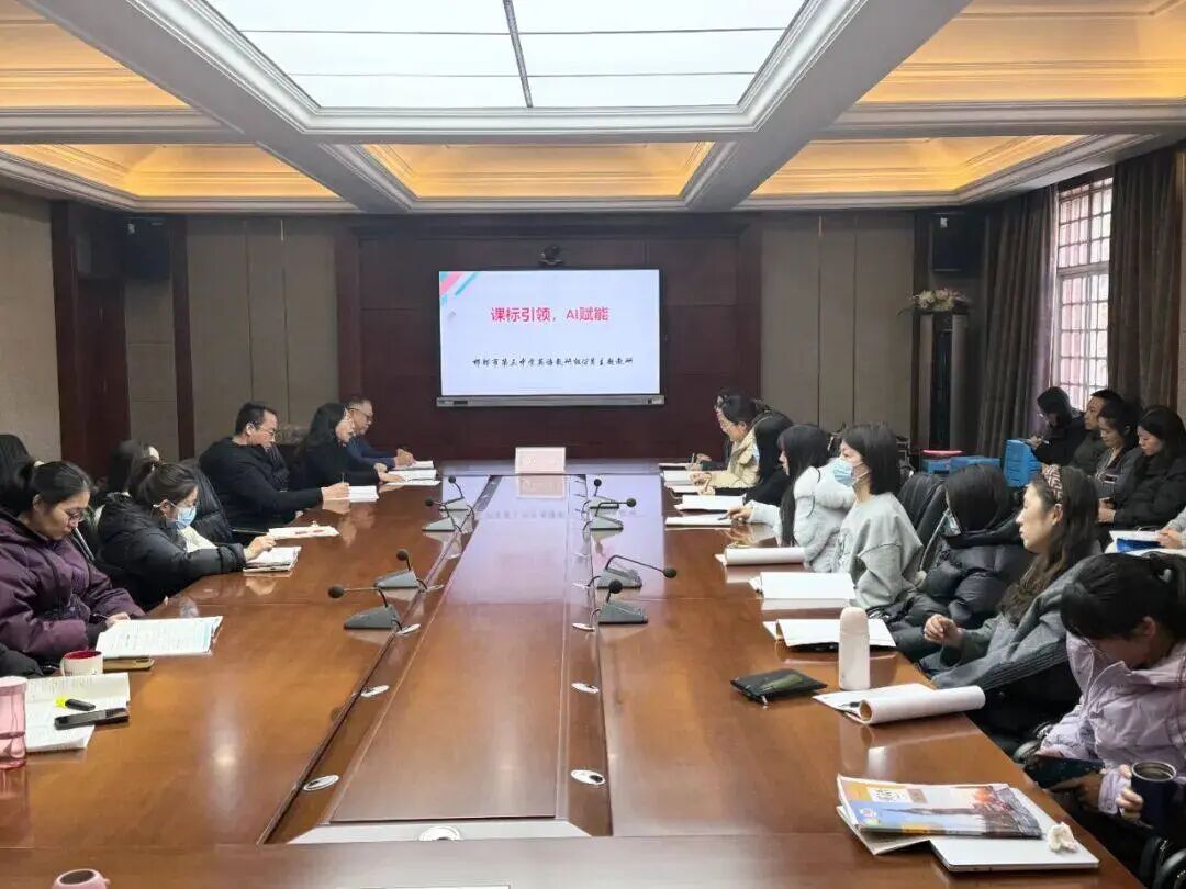 为深化新课标理念落地,探索人工智能与英语教学的深度融合路径,邯郸市第三中学英语组近期开展了以“课标引领 AI赋能”为主题的英语学科教研活动。活动由英语组李想老师住持,校党委书记杜海兵、副校长孙艳、教学处副主任杨宁以及全体高中英语组教师参会。