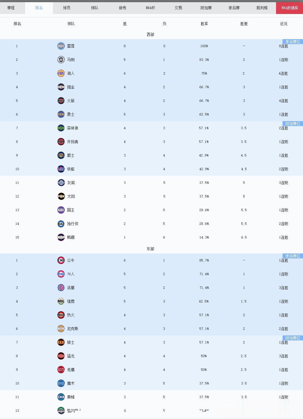 NBA 最新西部排名(截至 11 月 5 日)