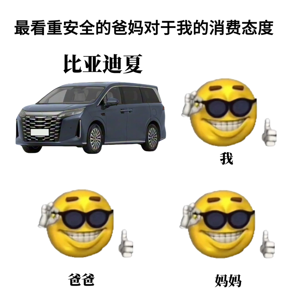 家里好几辆车,但是只要出门必须要开两辆车,家里人多但是只有五座SUV,我随口提了句想换辆MPV,就被朋友安利了一下比亚迪夏,还甩了一堆关于比亚迪夏安全测试的视频,这一看我爸妈也心动了,非这款车不可了!
