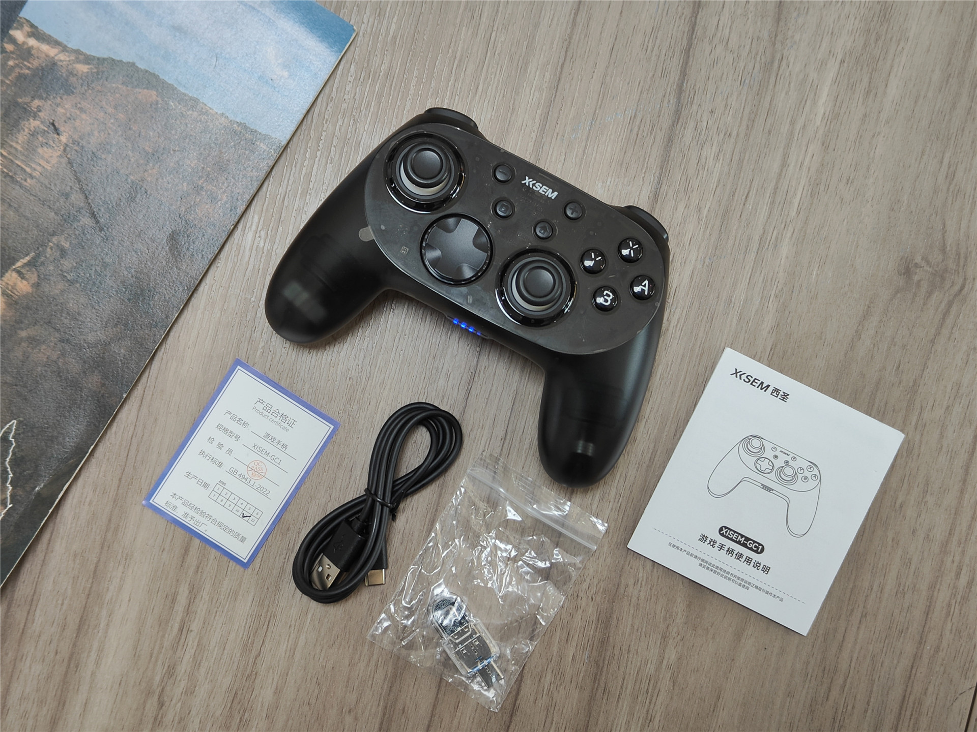 打开包装,手柄本体被精心包裹在定制的泡沫保护套中,确保了运输过程中的安全无损。除了手柄外,包装内还附带了USB-C充电线、说明书以及保修卡,这些细节之处无不体现了西圣对用户体验的重视。