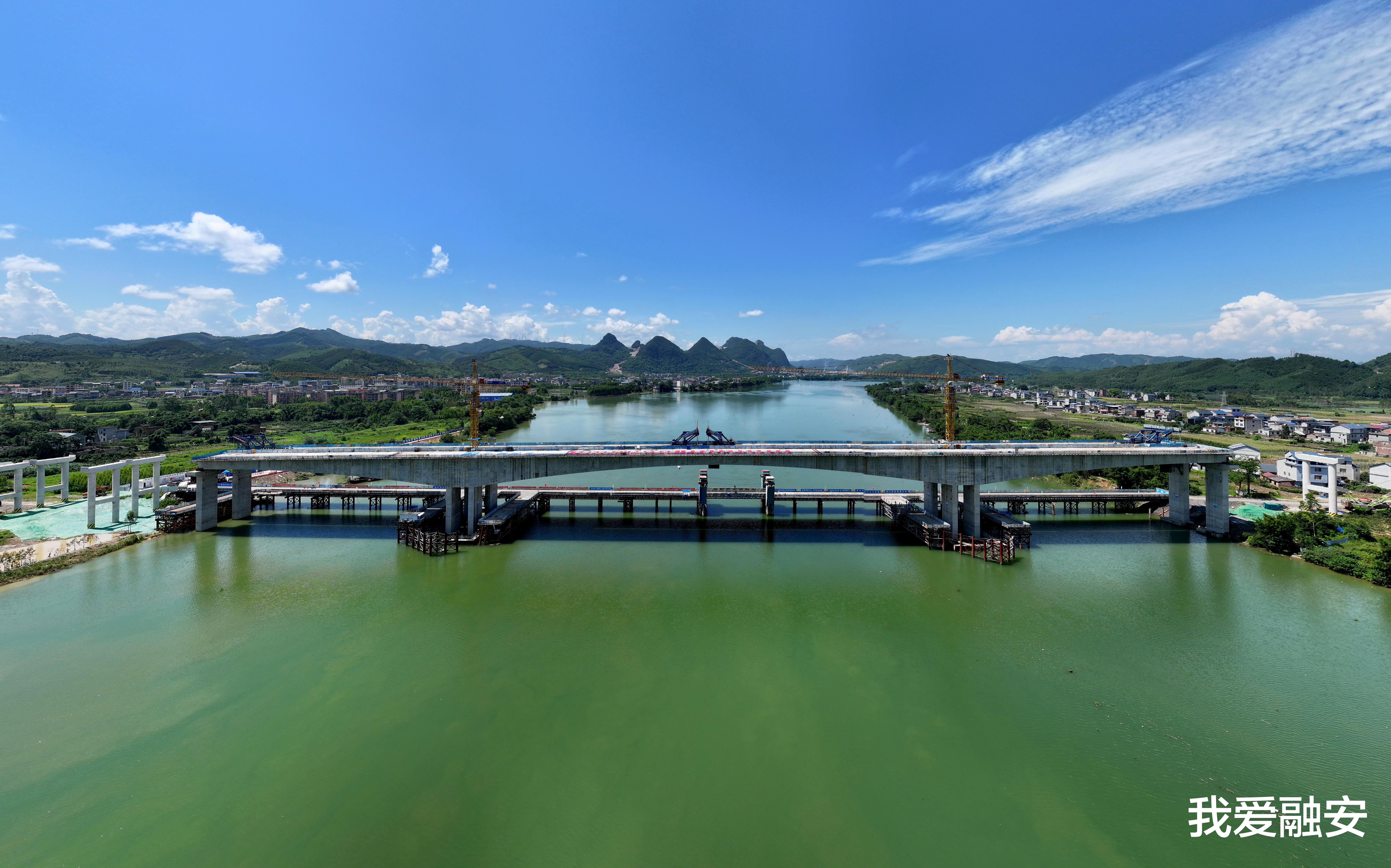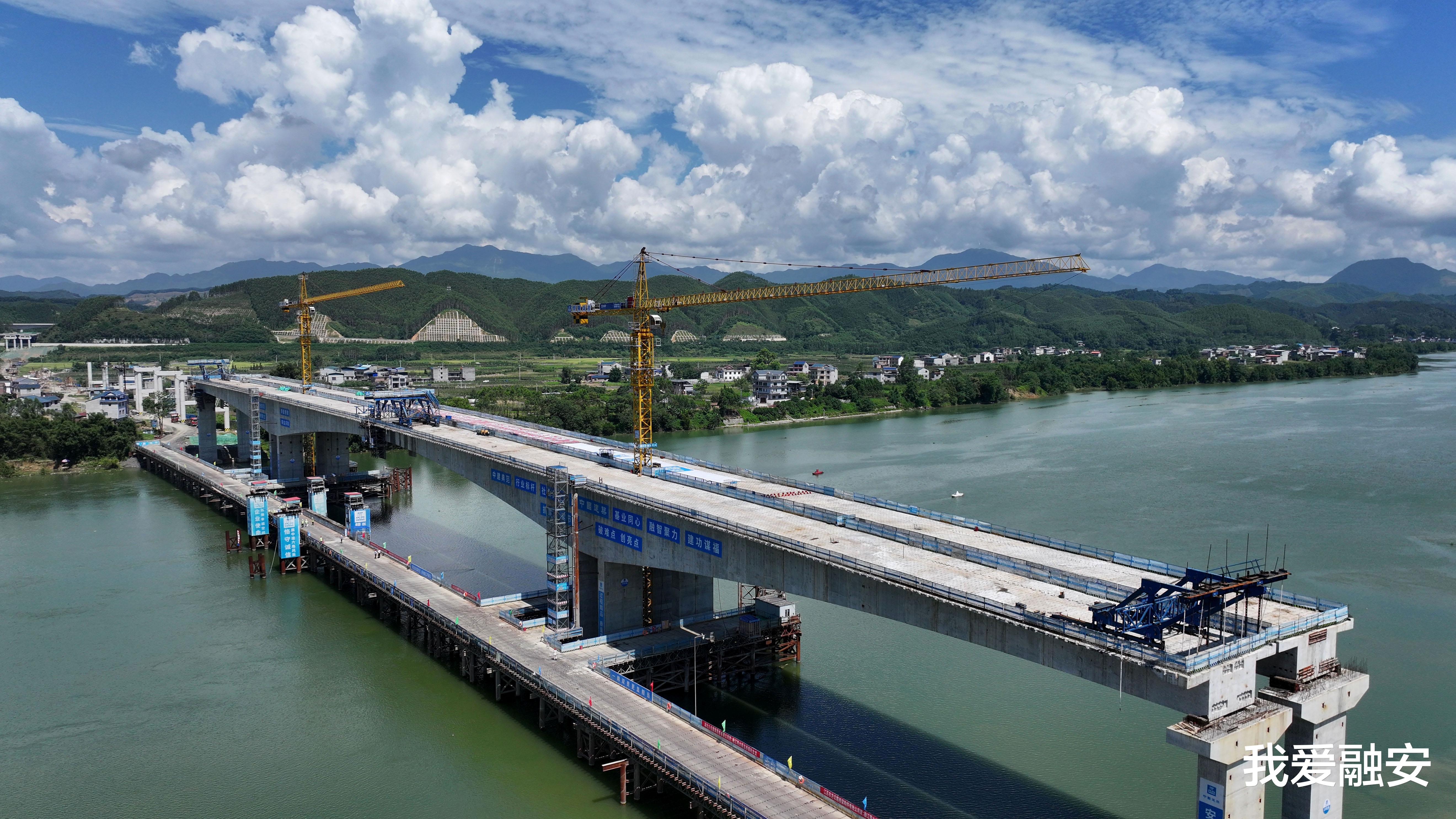 重大项目,加速推进。7月25日,由中建六局承建的广西融福高速公路No.1标项目融江特大桥主桥合龙仪式在融江融安县浮石镇段举行,该大桥主桥合龙是融福高速重要的里程碑节点,比预计工期提前了1个月完成,为下一步全线贯通奠定坚实基础,标志着全线贯通按下“加速键”。