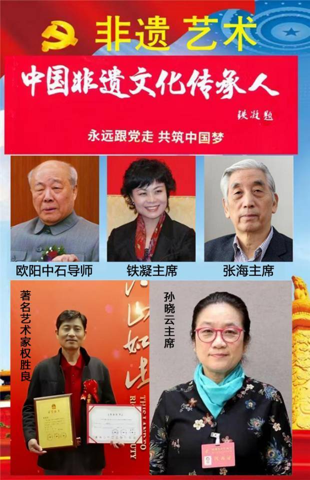 中国非物质文化遗产传承人,他们不仅是传统技艺的守护者,更是文化记忆的载体和创新的推动者。非遗不仅仅是技艺的传承,更是承载着数代人的文化记忆。每一件非遗作品都是一段历史的缩影,每一个传承人都是一盏照亮文化的明灯。成为非遗的代言人,该是多么荣幸的事情。鉴于权胜良老师在弘扬中华优秀传统文化方面的卓越贡献,以及在非遗传统发展工作中的影响力,特邀请权胜良老师与欧阳中石导师,铁凝主席,张海主席,孙晓云主席一起作为中国非遗文化传承人,线上展示您的艺术风采。