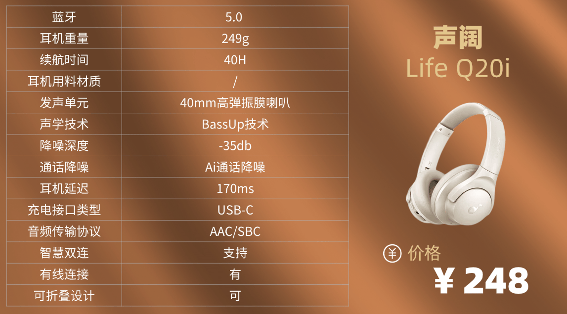 功能和续航都很能打,双重主动降噪带深度、中度、通透三种模式,地铁、办公室、户外切换着用特别方便,AI通话降噪还能精准滤掉环境噪音,打电话超清晰。蓝牙5.0连接日常听歌基本不卡顿,就是延迟比新款蓝牙稍高一点;续航更是省心,开降噪能连听40小时,关了降噪能到60小时,闪充5分钟就能用4小时,出门完全不用操心电量。