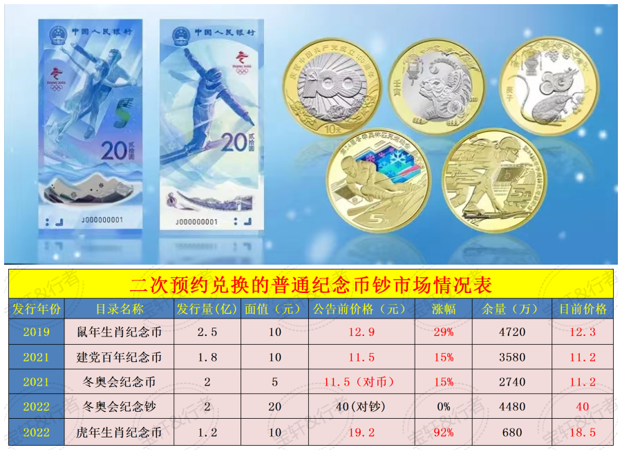 2、冬奥币、冬奥钞。在这次余量的冲击下,冬奥币钞后期行情用雪上加霜来形容是最好不过了。冬奥币顶着首枚彩色普通纪念币的噱头还可以在10.5-11.5元的区间挣扎下,而冬奥钞抽号后转身回存银行应该是绝大部分人想做的事。