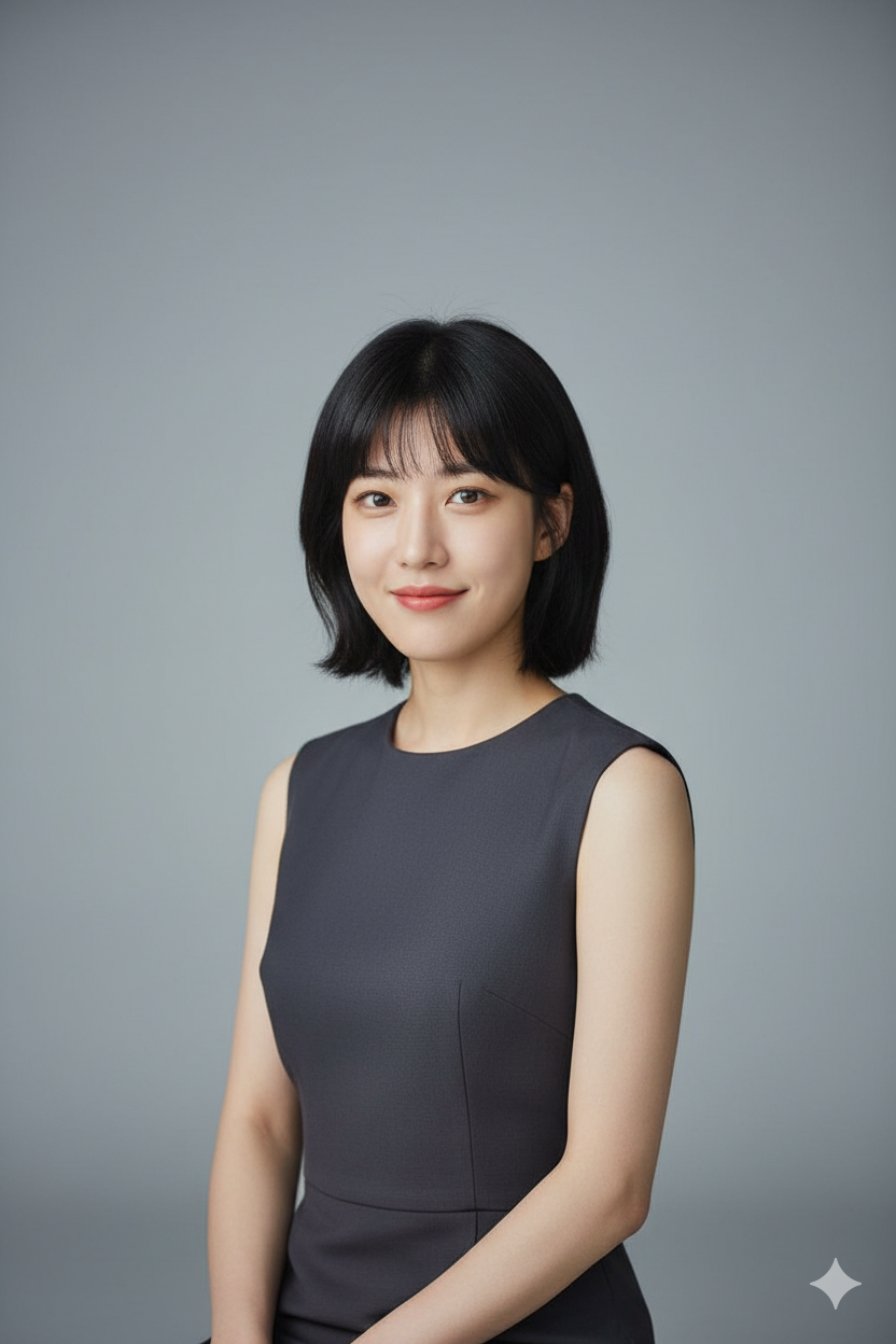 “……生成一张我的专业商务人像照,穿着无袖深灰色连衣裙,从胸部以上取景……背景为灰色渐变,光线柔和均匀……”