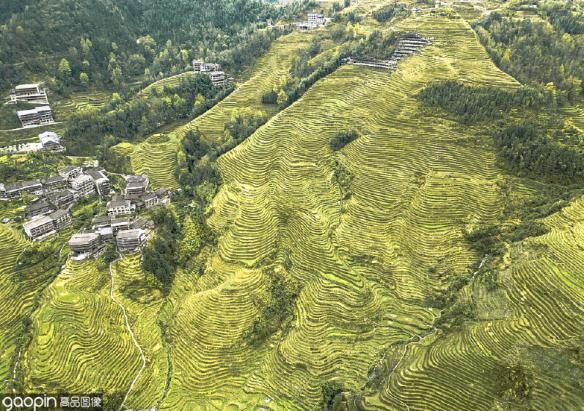 而洪门梯田,则是龙脊梯田之外的又一梯田美景。这里的梯田从山脚盘绕到山顶,层层叠叠,高低错落,线条行云流水,规模磅礴壮观。虽然这里的稻香可能不如龙脊梯田浓郁,但更为原味的梯田景观却让人流连忘返。没有争抢、没有拥堵、没有行色匆匆,只有宁静与美好。