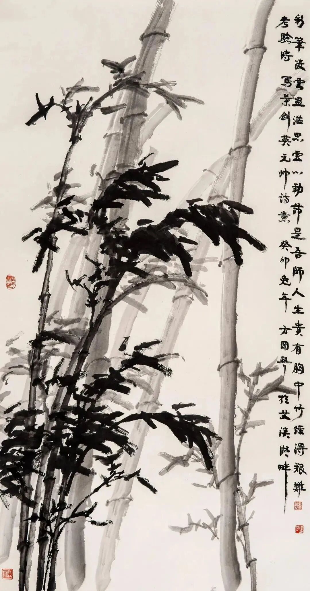 我以为方君的书法美,花鸟美,竹兰更美。他的兰花潇洒劲健,墨竹雄强豪放,无愧于“华夏兰竹王”之誉。“竹影笔墨传万世,兰姿线条惊千秋”。