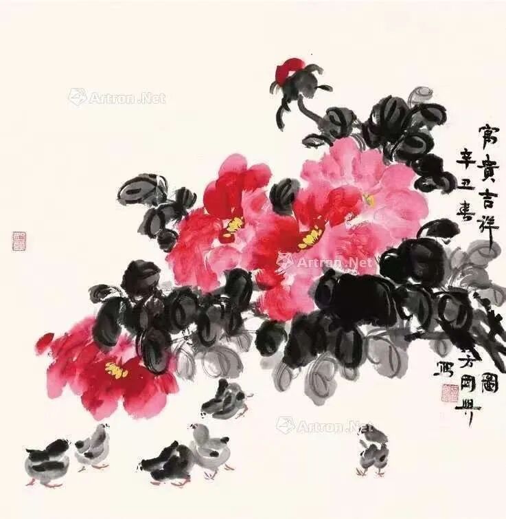 方国兴画的竹与吴昌硕的牡丹、齐白石的桃、张大千的荷、何海霞的松、关山月的梅、赵少昂的木棉、潘天寿的指画,同享中国近现代名家最具代表性的顶尖之作。方国兴笔下的小鸡与齐白石的虾、徐悲鸿的马、李可染的牛、黄胄的驴、胡爽庵的虎、吴作人的金鱼、李苦禅的鹰、娄师白的小鸡同享中国近现代名家最具代表作品之誉。