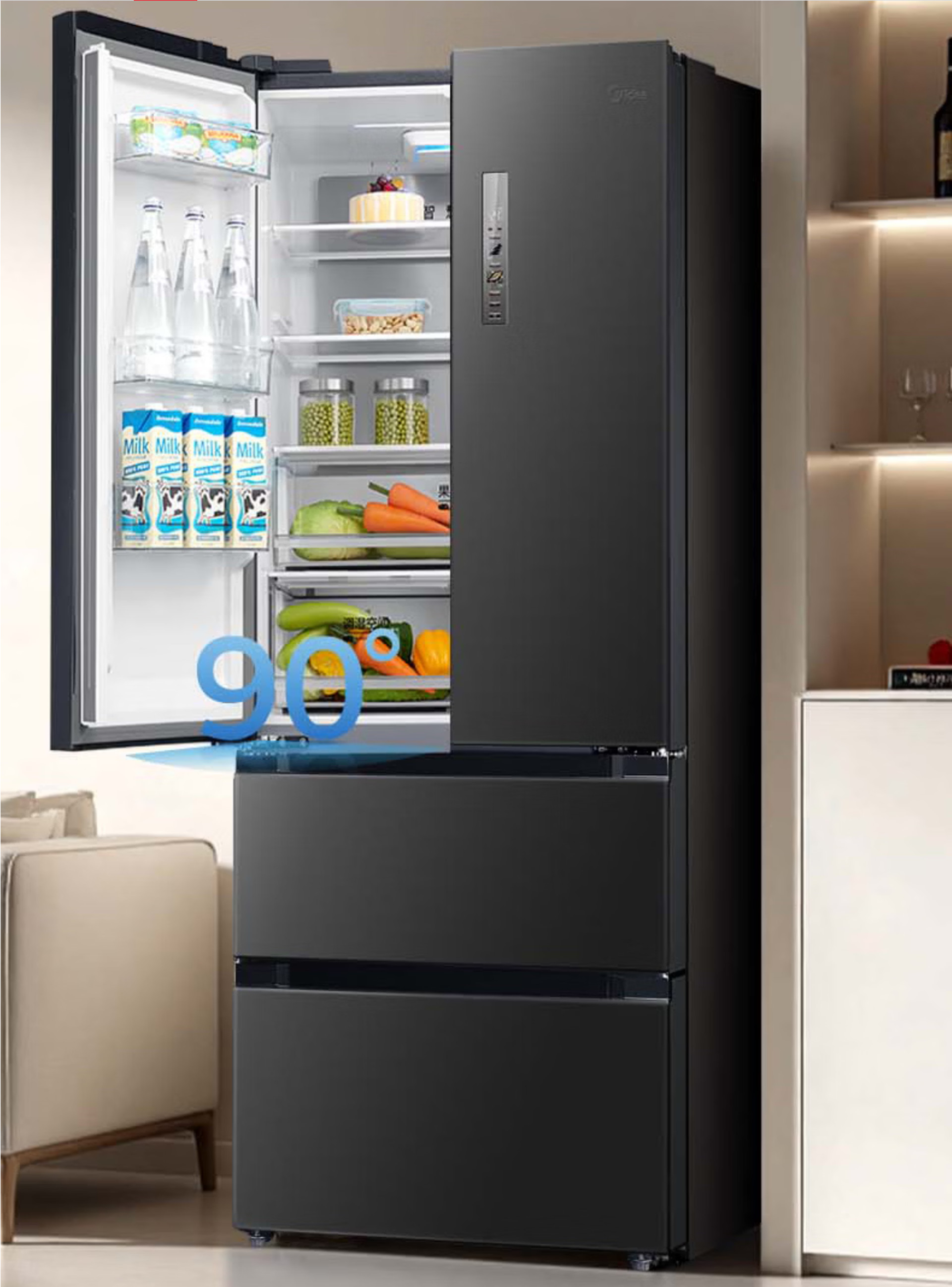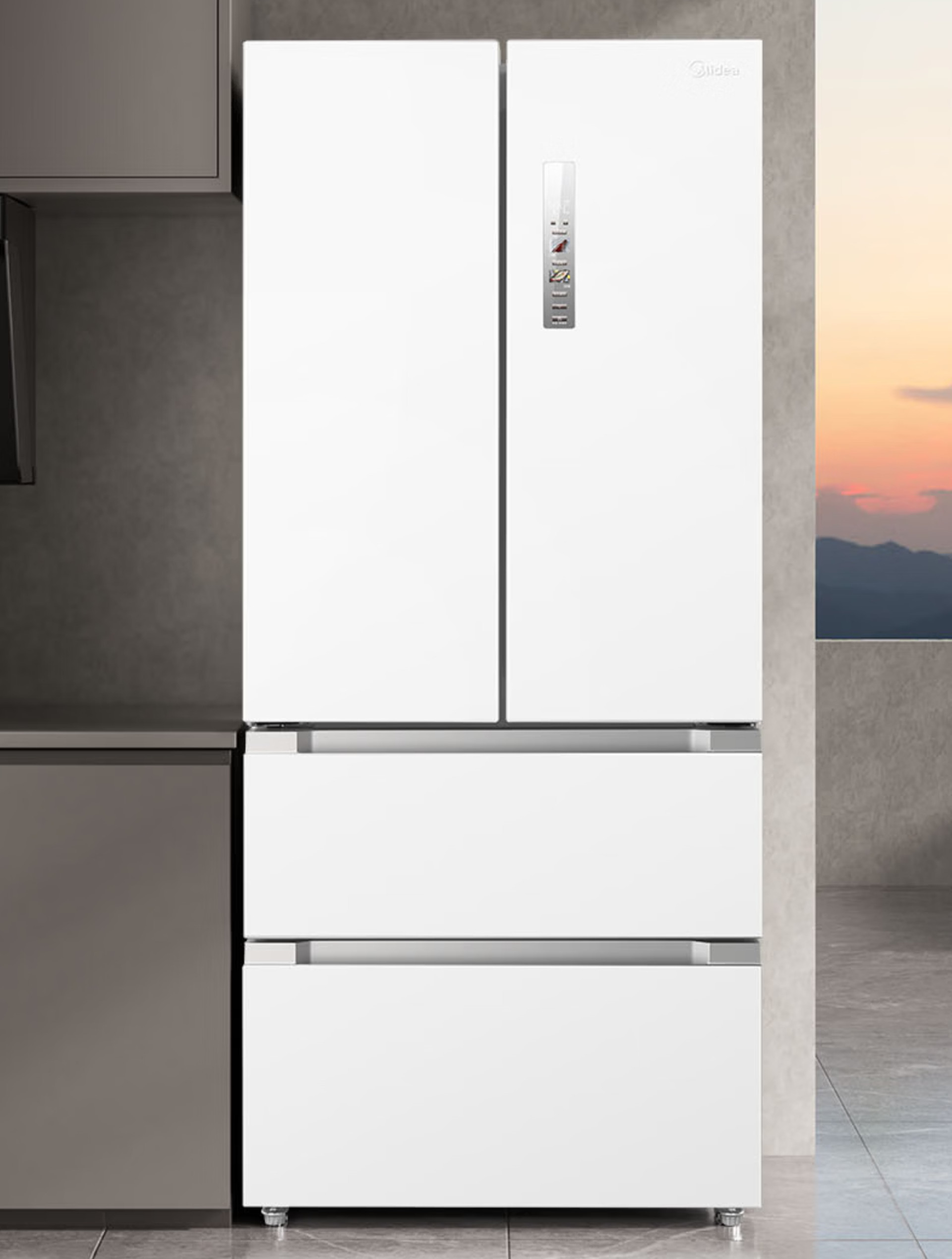 当下美的爆买机型如美的508L法式四开门冰箱BCD-508WTPZM(E),是搭载全食材保鲜技术的热卖机型,采用66.8cm的超薄零嵌设计,其优势主要有超薄零嵌设计,双系统独立循环,PST+智能净化,除菌除病毒率达99.9%,90°直角开门,抽屉自由抽拉,节省开门空间,合理的内部设计,可以灵活储存,全方位守护食材的安全卫生。