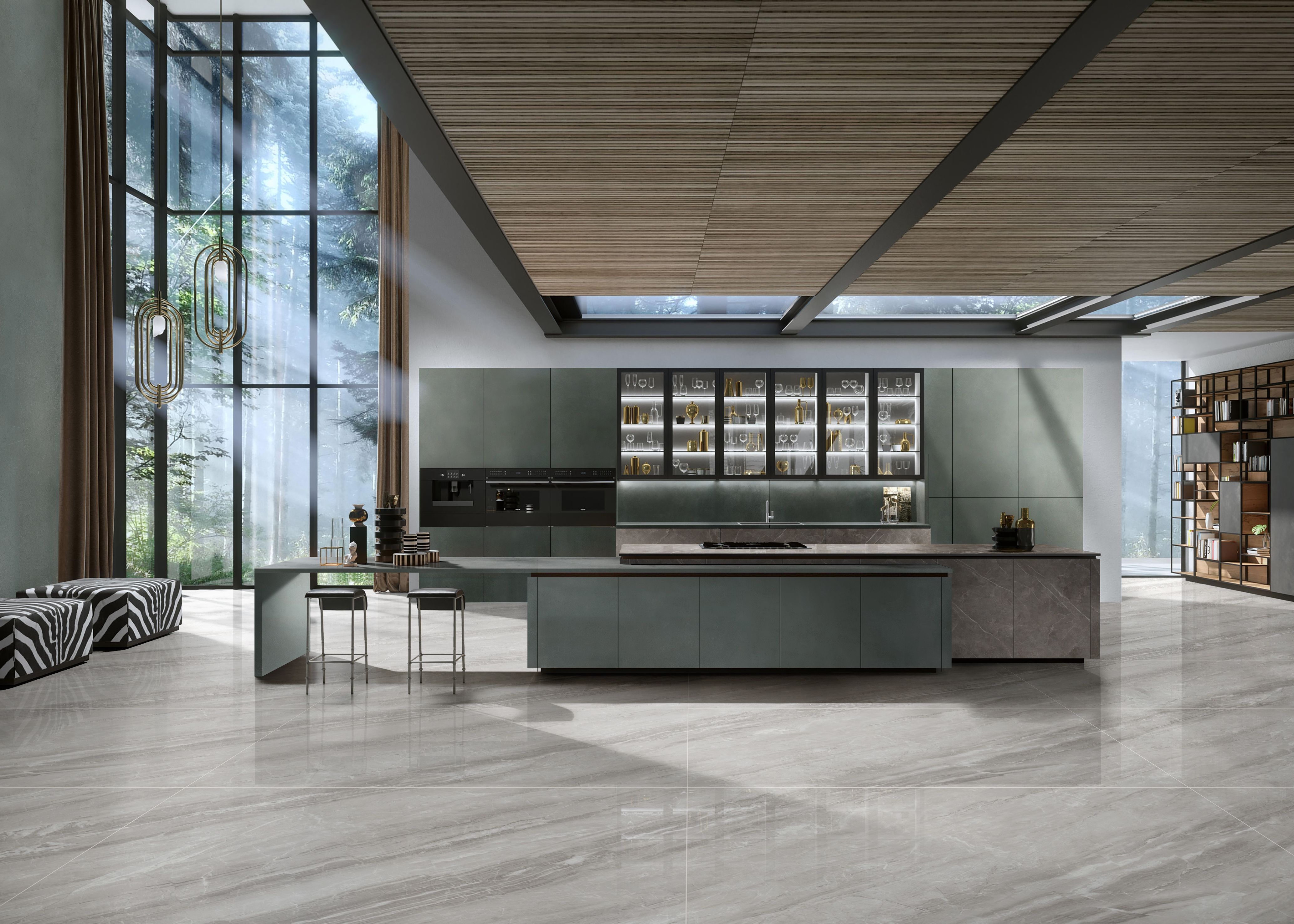 森系轻奢厨房把森林搬进家,国际瓷砖品牌解锁生活的 N 种优雅