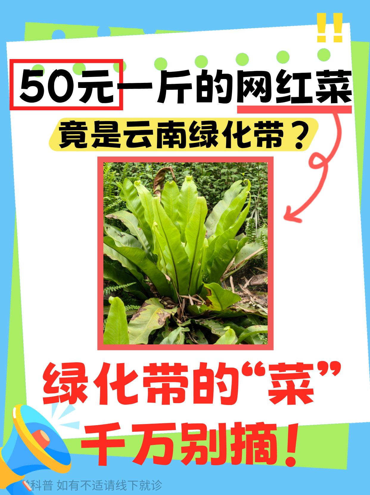 但重点来了!超市卖的是专门培育的食用品种,云南绿化带里的是观赏型巢蕨,可不能随便薅来吃。