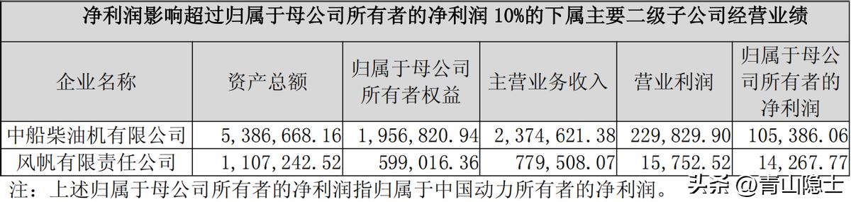除中柴公司和风帆公司外,其他子公司的收入合计201.55亿元,归属于中国动力所有者的净利润为1.93亿元。