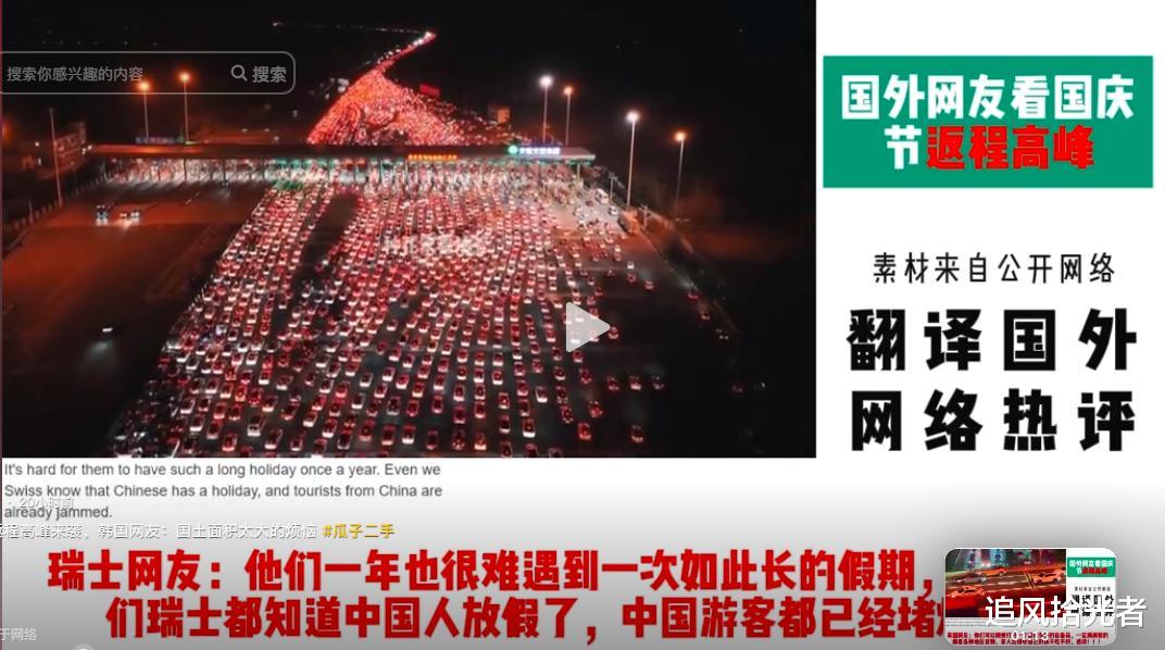 瑞士网友:他们一年也很难遇到一次如此长的假期,就连我们瑞士都知道中国人放假了,中国游客都已经堵爆了