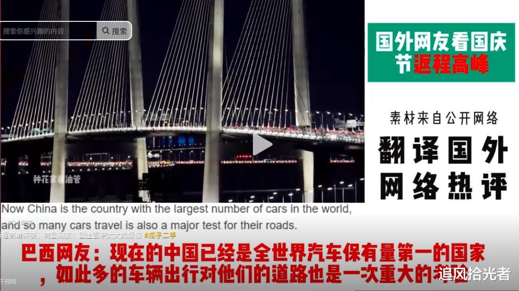 巴西网友:现在的中国已经是全世界汽车保有量第一的国家,如此多的车辆出行对他们的道路也是一次重大的考验