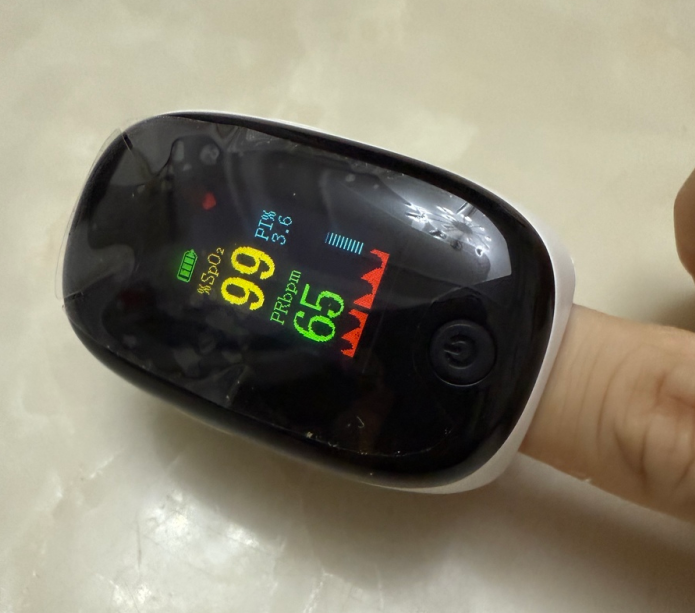 它的这款欧姆龙血氧仪之前放包里摔过一次,壳子没裂,测值还是正常的,耐用性还行。用了抗环境光干扰的模块,室内开灯测也不会受影响,读数准度尚可。但手指偏细的话,夹的时候得稍微按一下,不然贴合度不够,偶尔漏数。