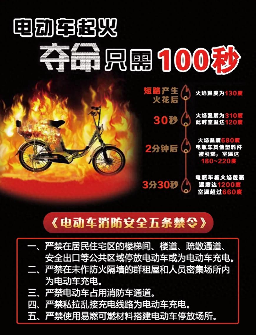 电动车上最重要的配件是电池,按类型有铅酸电池、三元锂电池、磷酸铁锂电池和钠电池。经常看见有新闻报道,两轮电动车的电池爆燃起火,起火原因是电池内部电芯因高温短路造成热失控,几秒钟之内温度就会上升800~1000度。火势初期使用普通灭火器很难将火扑灭。在密闭的空间内,燃烧会产生有毒有害气体,伴随着高温会烧毁空间内的一切可燃物,火势得不到控制,还会造成更大的财产损失或人员伤亡。
