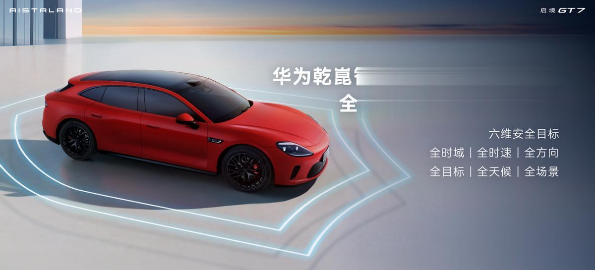 搭载由宁德时代、华为乾崑、启境三方联合定制的新一代麒麟电池,支持800V高压平台与6C超充倍率,解决用户对电车续航与充电的核心焦虑。启境GT7构建“主动安全、被动安全、隐私安全、健康安全“全维安全体系。主动安全层面基于华为乾崑智驾ADS 5、CAS5.0全维防碰撞系统;被动安全上标配8安全气囊,并采用热成型盾甲车身、2200MPa热气胀管梁,具备5倍顶压能力;隐私安全由华为乾崑端到端网络安全解决方案保障,健康安全则应用母婴级环保座舱标准,以全维防护助力用户安心出行。