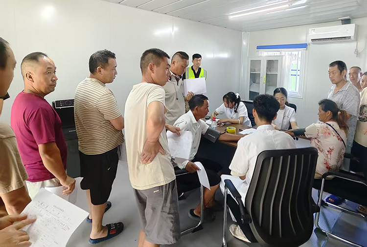 当日早上7点,当第一缕阳光洒在工地上,来自安新县医院的10余名医护人员已携带着专业的医疗设备,在临时搭建的“体检中心”内准备就绪。这里有视力测试仪、血压计、血糖仪、心电图机等常规设备,俨然一个功能齐全的“微型医院”。