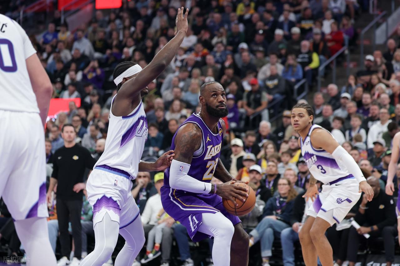 这场比赛湖人这边是缺兵少将,艾顿、里夫斯、文森特都打不了,爵士方面马尔卡宁也不打。第一节比赛,湖人队在进攻端打得是没什么毛病的,单节轰下32分;但是在防守端,湖人几乎是形同虚设,内外线都被爵士打爆了,让爵士单节轰下41分。第二节一上来,詹姆斯带领着替补球员将分差缩小到2分;但随后爵士又打出一波小高潮将分差拉开到7分。之后两队有来有往进入对攻大战,半场比赛结束,湖人73-78落后5分。