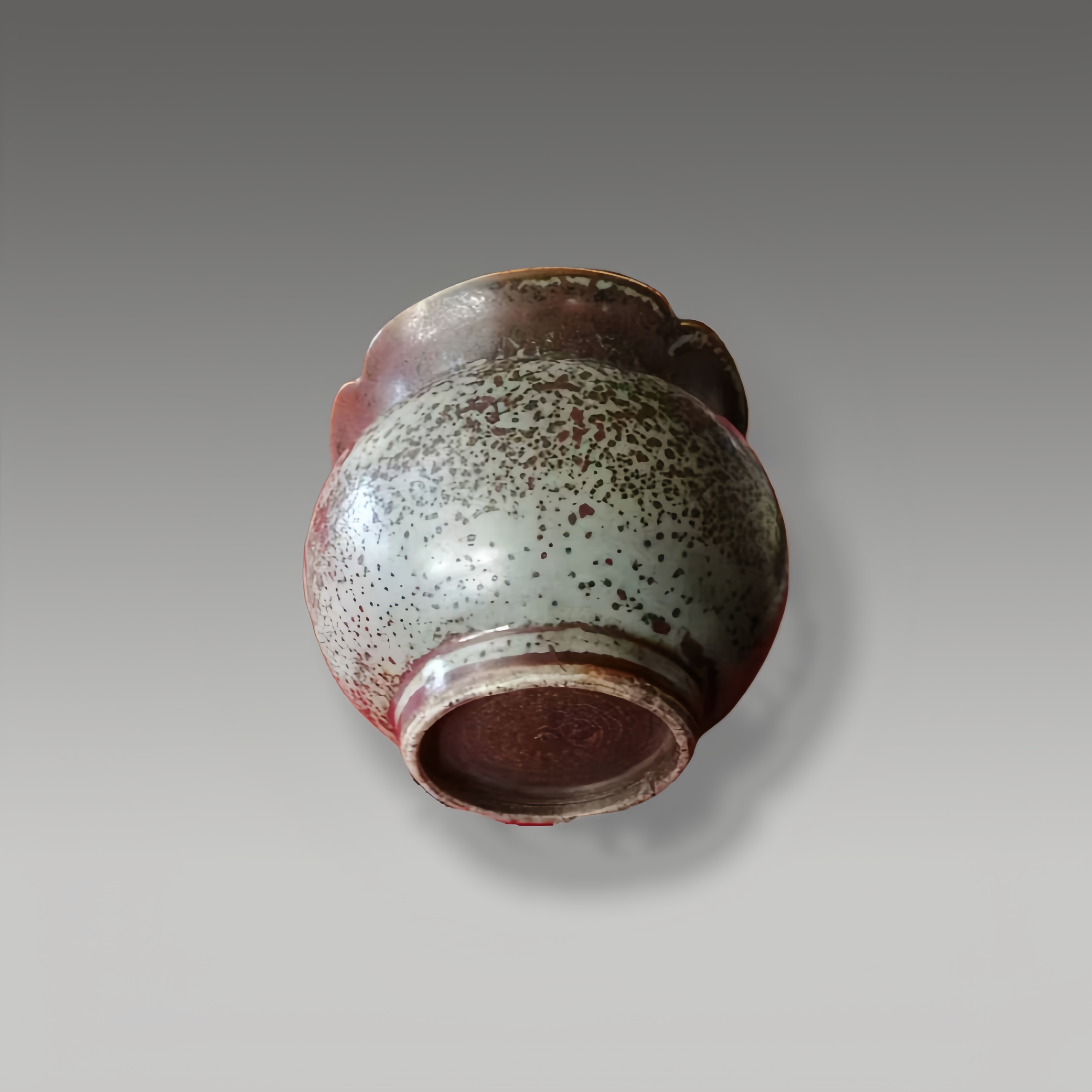 器型精巧,花口柔婉灵动,釉色褐白交织如星斑落盏,肌理温润细腻,雅韵浑然,尽显器物秀逸之美