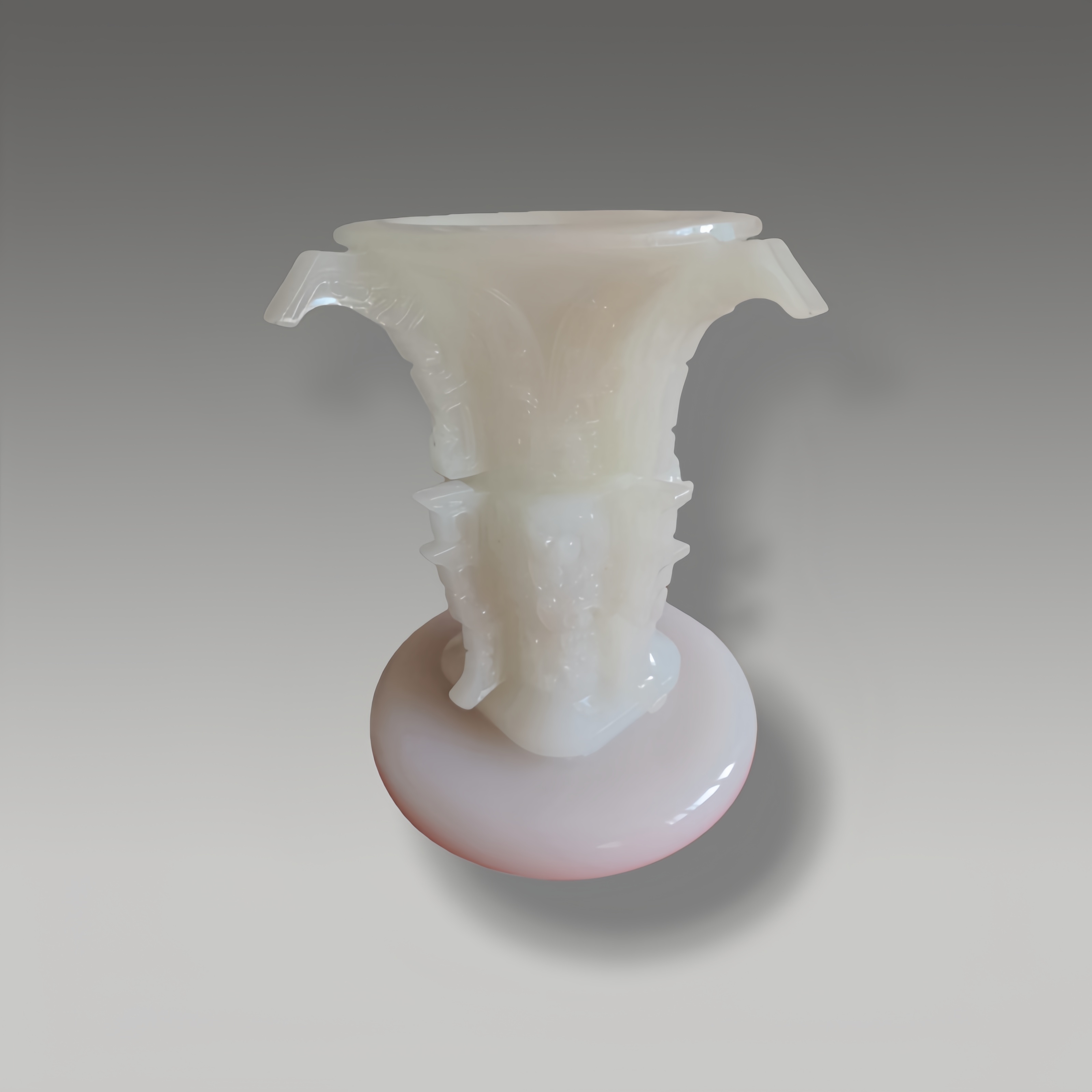 质润如脂,浮雕纹饰层次灵动,器型融新意,线条婉转间尽显雕工精妙,玉色莹白澄澈
