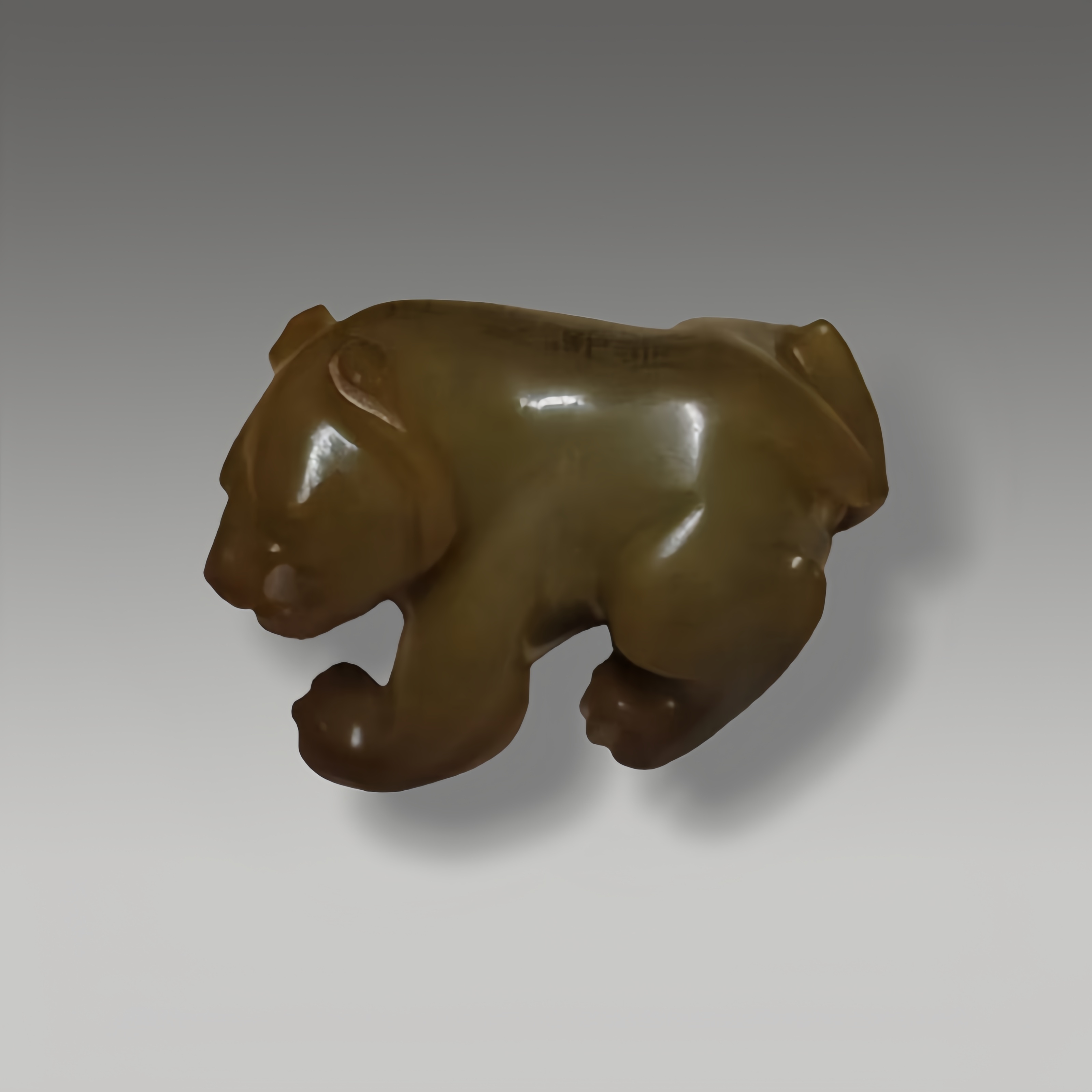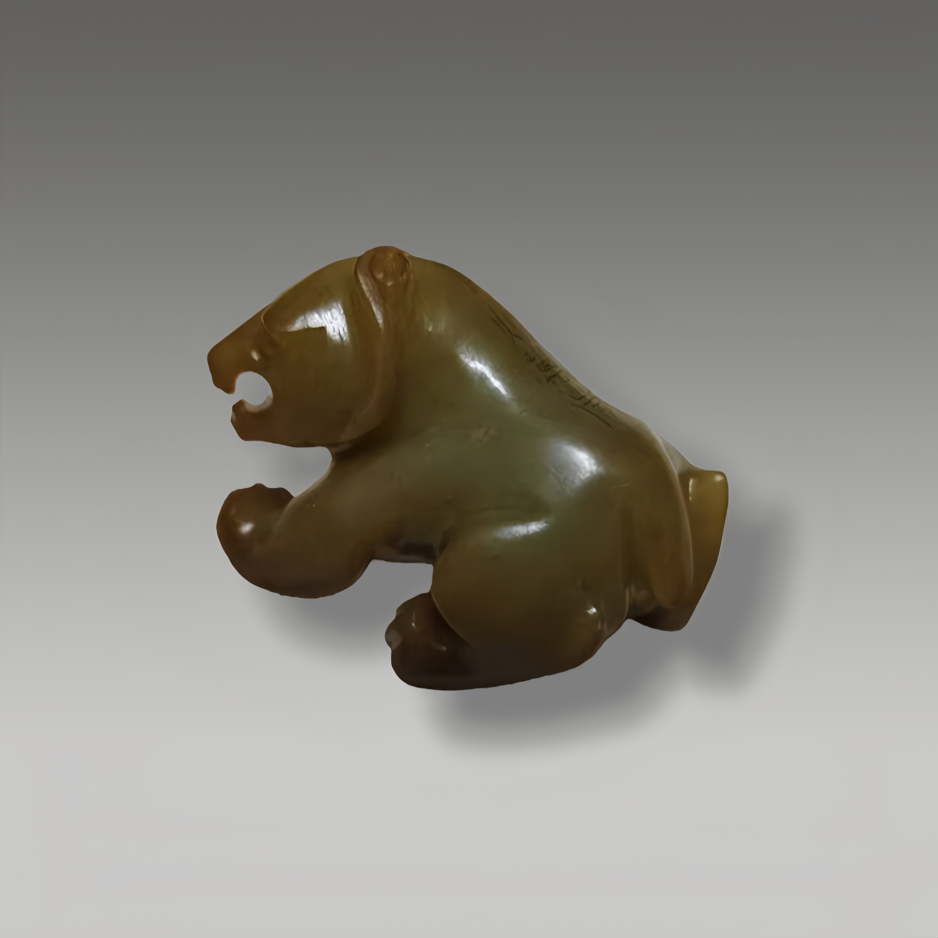凝润玉质雕熊形,体态雄浑肌理真,刻纹藏雅韵,掌爪见苍劲风骨