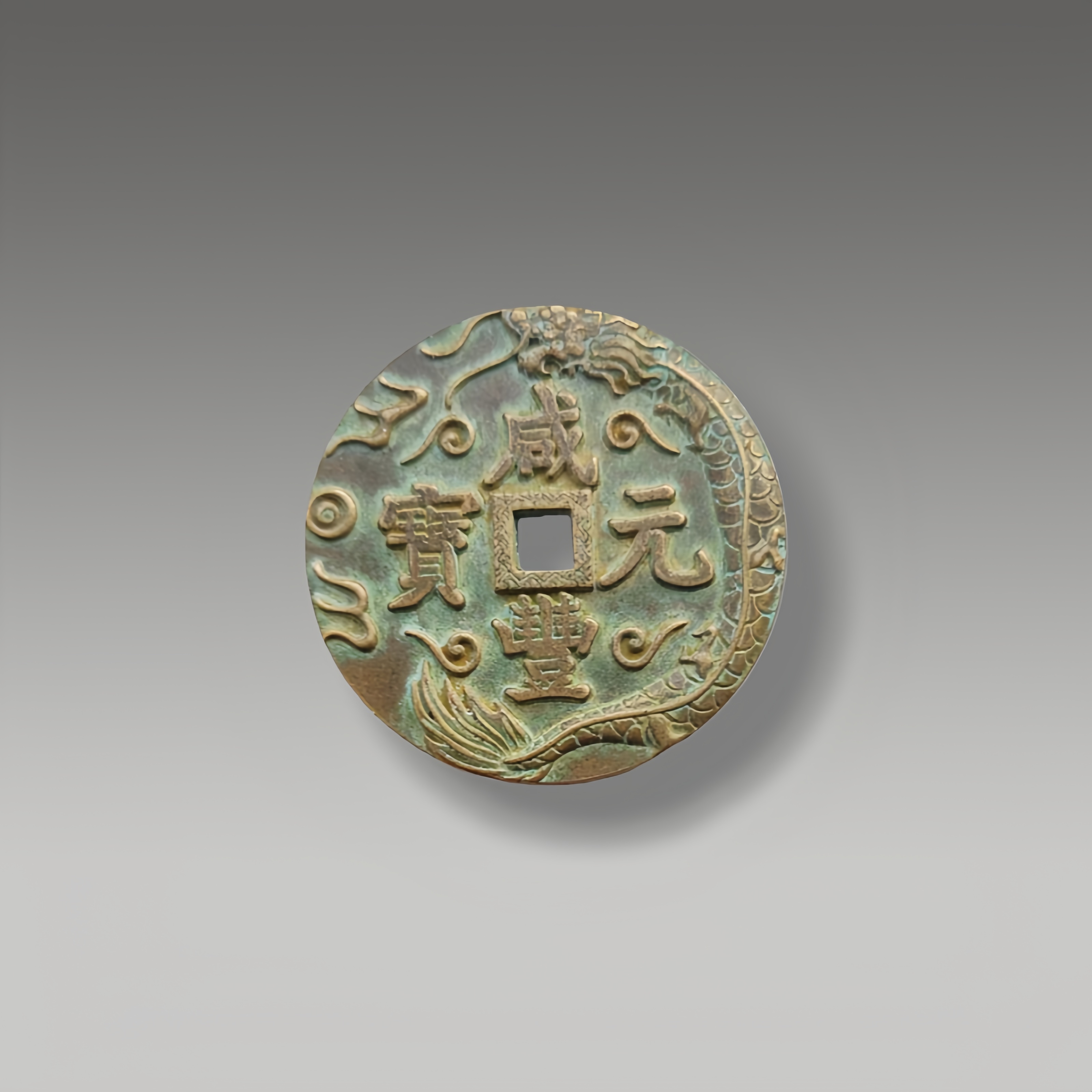 纹饰精雕细琢,龙纹灵动矫健,文字劲挺浑厚,铜质包浆层次丰盈,尽显工艺的匠心与气韵