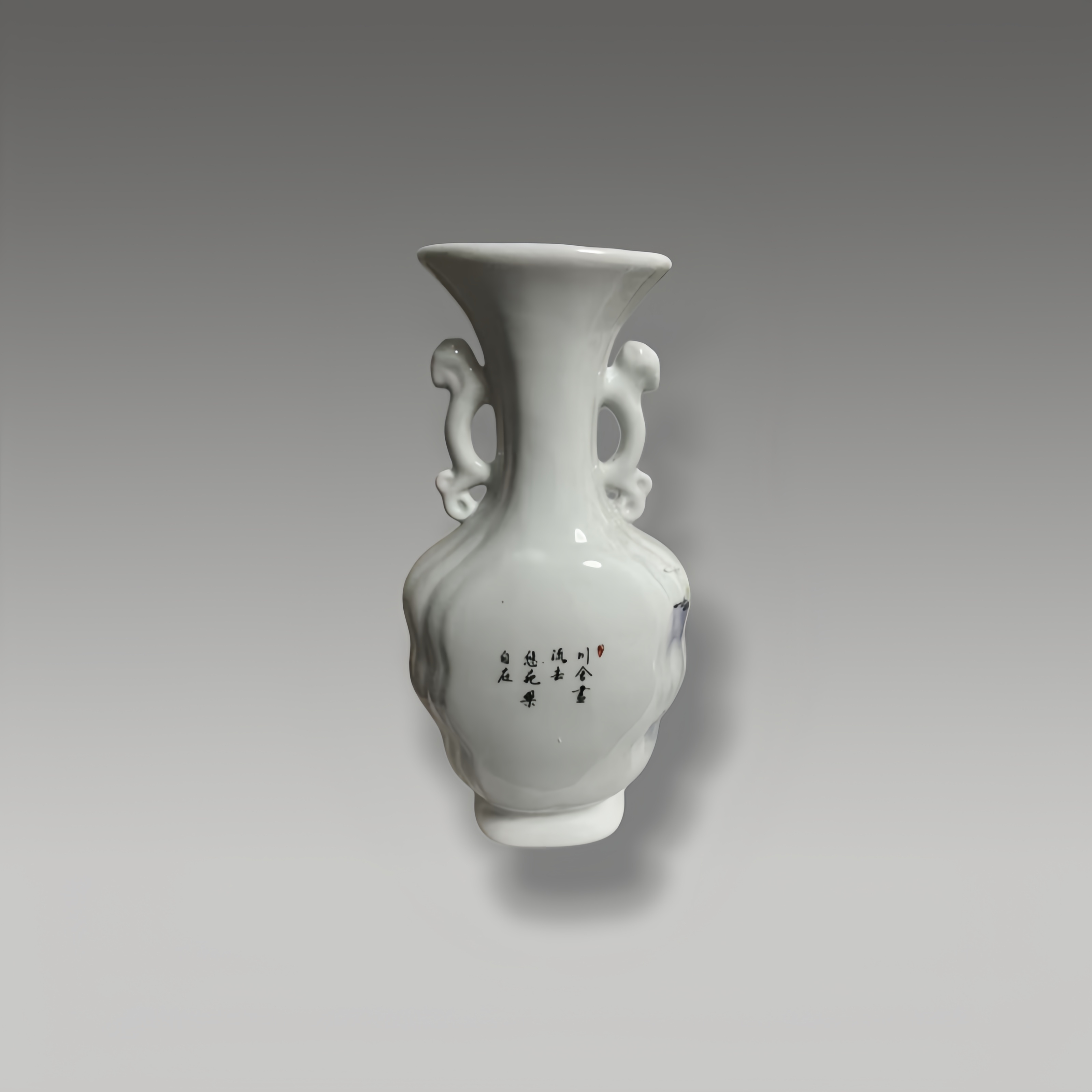 胎质莹润似玉,粉彩山水绘得层次分明,远山近舍意境悠远,如意耳造型雅致,一器融瓷质之美与中式山水的诗意