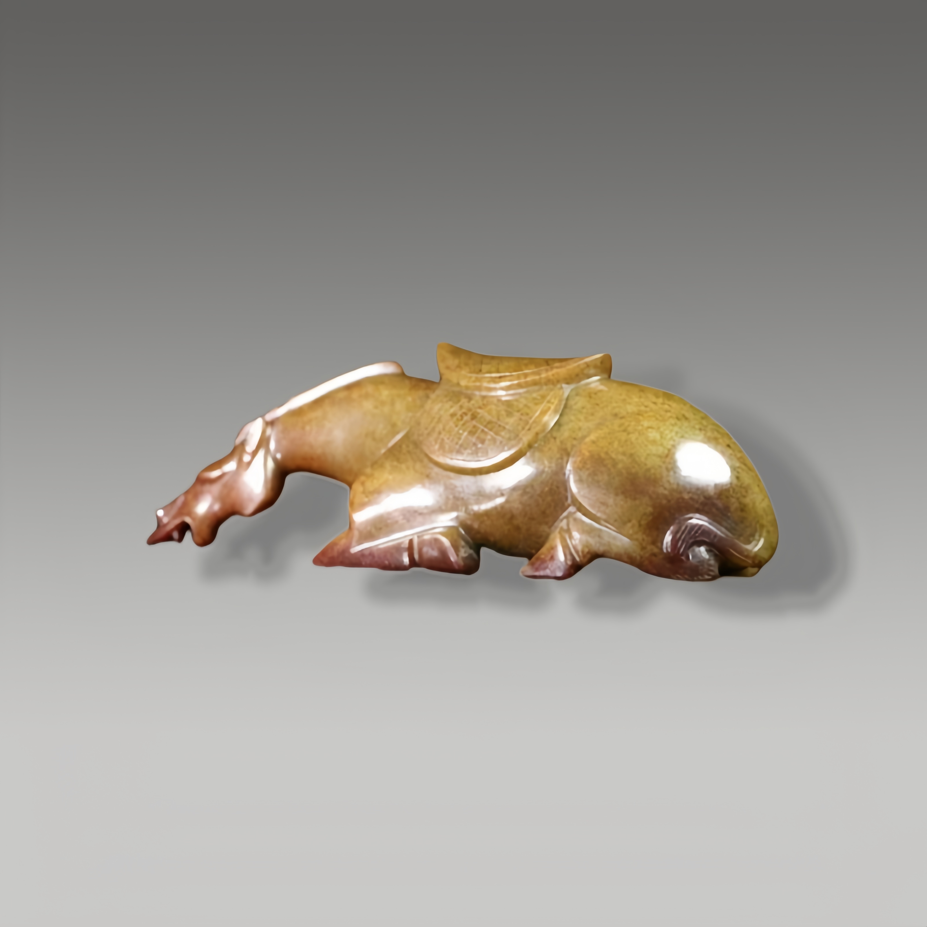 玉质雕作马形,肌理宛然见风骨,砂色沁韵融于料,藏品苍茫意趣