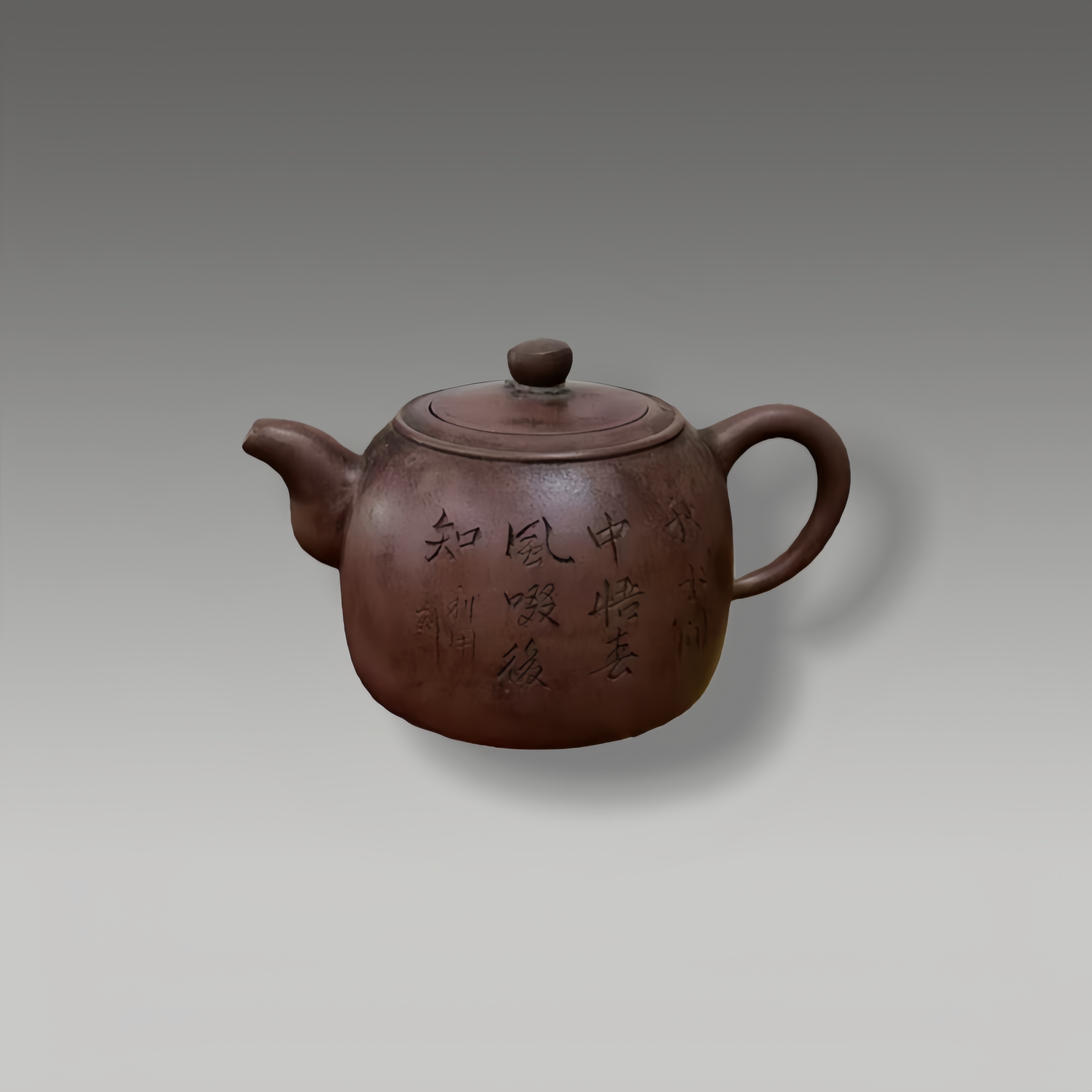 紫泥为骨,刀笔镌春,壶身铭“悟春风暖”,茶事间藏文人清趣,器型圆融见匠心