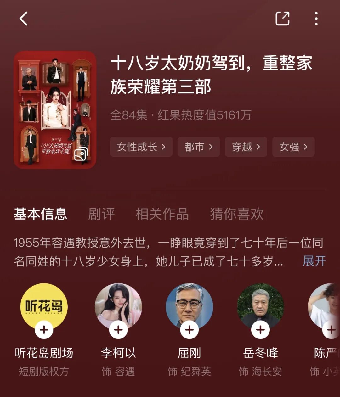 尽管是否真正“爱女”仍有待商榷,但一个明显的趋势是:短剧确实不再那么热衷于“虐女”了。以《太奶奶》和《云渺》两大热门IP为例,女主角不仅地位超凡、身份尊贵,更拥有贯穿始终的“金手指”,全程掌控叙事主动权。