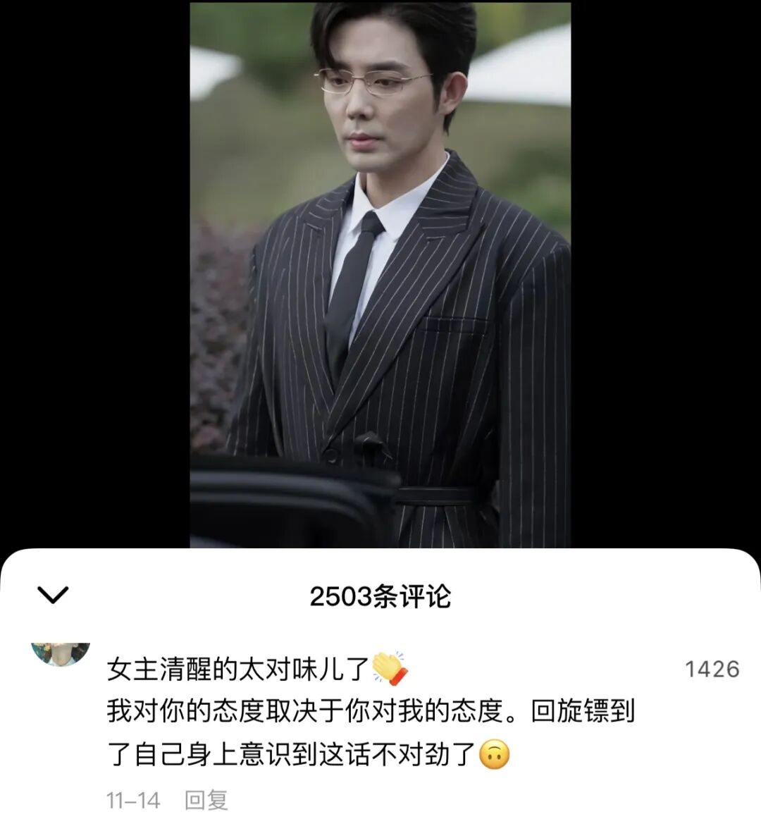 同样是王格格与何建麒组CP,去年国庆播出的《深情诱引》还是标准的虐女文学:女主林语熙原生家庭破碎,身世凄惨,在婚姻中因各种误会与霸总男主周晏京虐恋纠缠。而今年国庆上线的《一见钟情》中,王格格饰演的温绪却是家境优渥、事业有成的北城律师,不缺钱也不缺爱;何建麒饰演的周烈则跳出霸总套路,是一名民宿老板。二人的社会地位更加平等,恋爱关系也缘于温绪的主动。整体而言,掐脖强制爱少了,平等双向的情感互动多了。从评论区可以看出,无论是恋爱关系中的权力平衡,还是女性角色塑造中独立性的加强,这些变化都能被观众敏锐地捕捉到。