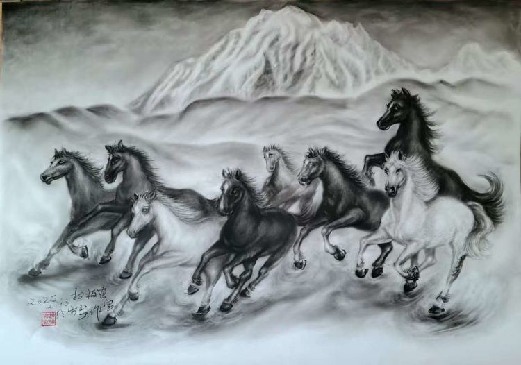 张松柏,字:文俊,号:道登。1949年10月生于四川乐山,粉墨画创始人,非遗粉墨画传承师,中国非物质文化遗产推广大使,国学传承工作委员会委员,国家一级美术师,中国书画家研究会文化艺术委员会艺术顾问,中国国际教育电视台特邀艺术顾问,中国地名学会.红色文化专业委员.名誉会长,中国外事国宾礼特供艺术家,中国楹联学会书画艺术报副主任,国礼书画院副院长,红旗飘飘书画院学术委员、艺术评审委员兼书画研究员。首都书画院理事,孔子美术馆培训中心客座教授,峨眉山松柏画院院长。2004年起:粉墨画代表作“世界名人肖像”上百幅曾在成都、广州、长春、山东、浙江等各大城市巡迴展出,深受广大民众喜爱,受各大纪念馆所青睐。用不同的手法滿足不同的需要是粉墨画创作的又一特色。主要代表作品有:《中外名人肖像》《抗日英烈肖像》《抗日名将》《两弹一星》《中国20位科技创始人》《古代名医》《儒家四科十二哲》《历代高僧》及众多宗教人物和山水动物。品类繁多,红色与传统各成系列。。。极为可贵的是:对粉墨画新画种的认定,并不是无凭无据的自我论证,而是国家知识产权局慎重认证的文化功勋!不同画种的界限,主要区别于材料、工具和创作技巧的不同。也就造成了创作技法的完全不相同,画面极其细腻而精湛。有利于人物肖像的传神写照,加上黑色炭粉和矿物原料的物理特性,使作品具有百年如新的珍贵的保存價值。自晋朝顾恺之就提出以神造型的人物画及绘画创作课程体系,历代都有人物绘画传神的高手,唐朝的吳道子,宋朝i梁楷,清朝:任百年,现代:徐悲鸿,蒋兆和……都注重人物传神,肖像画达到形神兼备是历代画种中最难的一大课程,就粉墨画而论:与历代名家不同点,巨幅肖像不失神韵,提练了各种人物在不同时代的神灵再现,在中国传统绘画史上,粉墨肖像画又添加了珍贵的一页。纵然历经千年,也传神如初。人类历史上的精英人物肖像作品供春秋传颂而永不褪色。这是人类文化史上的幸运!这也是国家文化版权局郑重地把粉墨画认证为新画种的重要原因。最后,望张松柏先生的粉墨画研究能更上一层楼而不断发杨光大,为后人,为中国传统绘画作出更大贡献!
