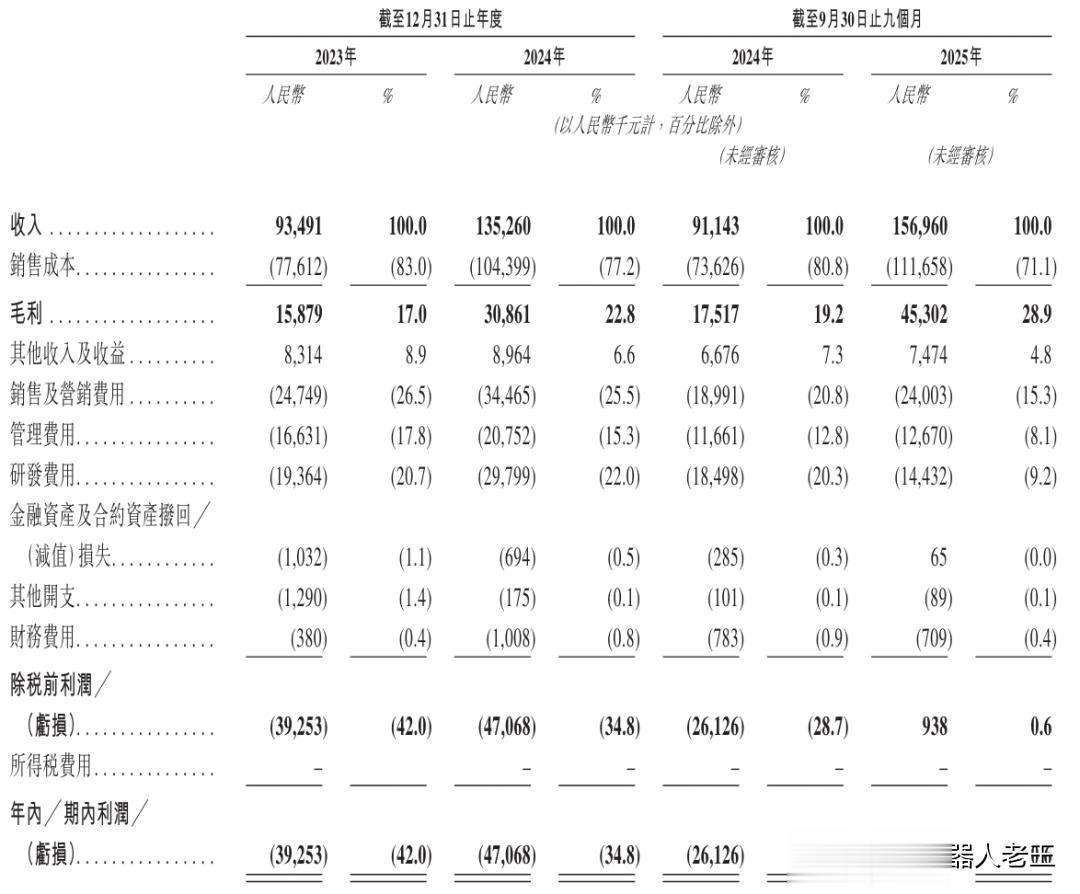 营收高速增长,营收从2023年的0.935亿元跃升至2024年的1.35亿元,同比增长44.4%。2025年前九个月收入已达1.57亿元,超过2024年全年总和,显示出强大的市场扩张能力和收入增长动能。更积极的信号是毛利率的持续改善,毛利率从2023年的17.0% 显著提升至2024年的22.8%,并于2025年前九个月达到28.9%,反映了产品竞争力提升与规模效应初显。