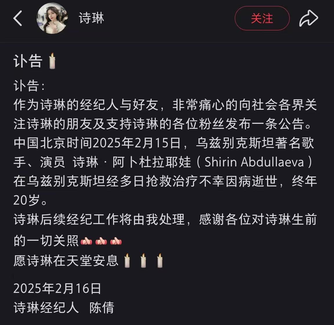 在这个瞬息万变的时代,我们需要更多像诗琳这样的艺术家,他们用自己的才华和努力,推动着文化的交流与融合。她的故事将永远激励着我们,让我们在追求梦想的道路上不再孤单。愿她在另一个世界没有病痛,愿她的家人节哀顺变。