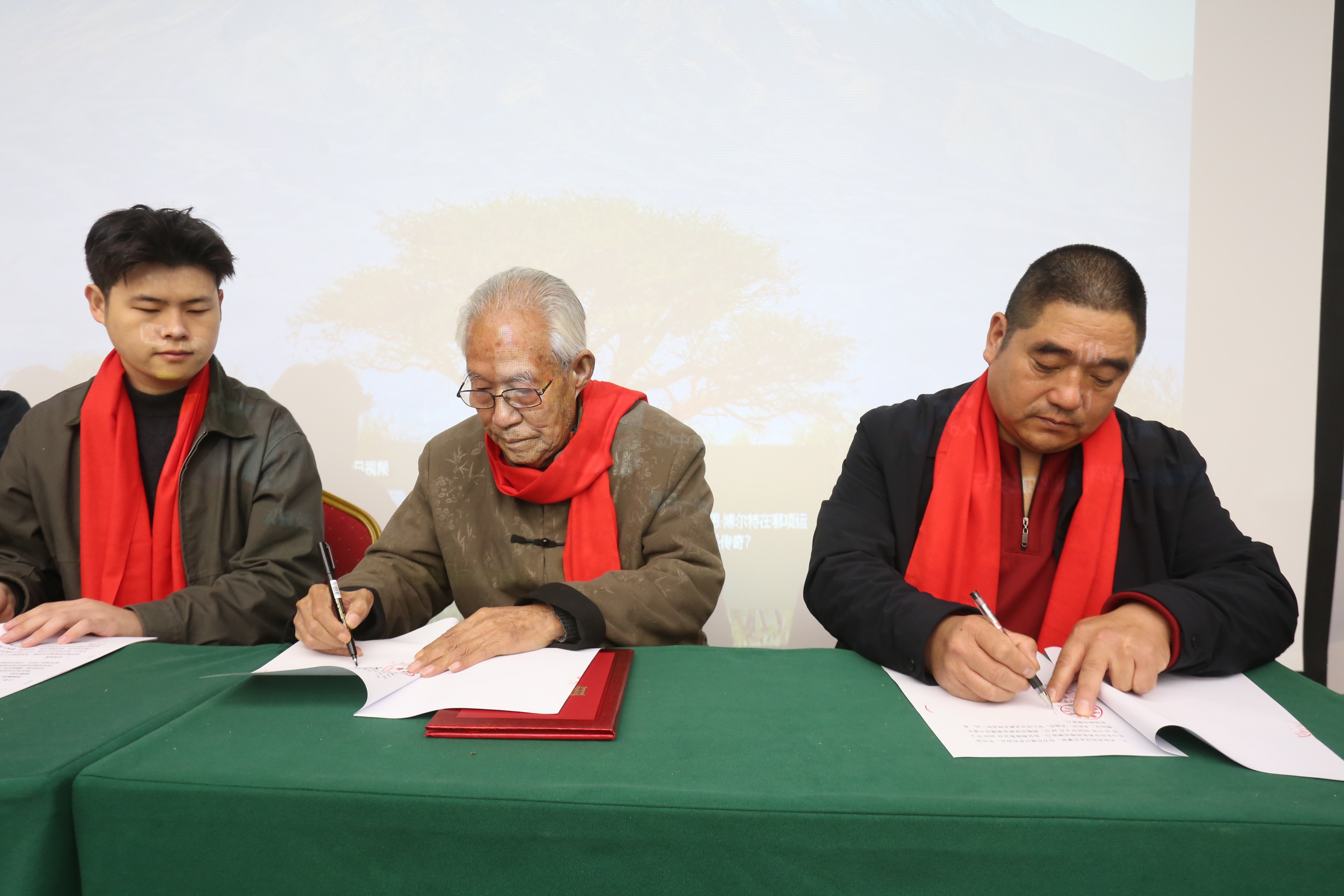 在众多文化艺术界名家、各界嘉宾的见证下,高老与该镇商会杨会长携手入场,寓意着艺术与产业的深度融合。随后,签约环节庄重而有序,双方代表在合作协议上郑重签字,交换文本,合影留念,定格下这一具有里程碑意义的瞬间。