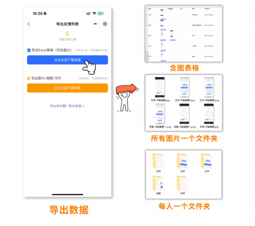 收集到的信息、资料可一键导出Excel表格和压缩文件;